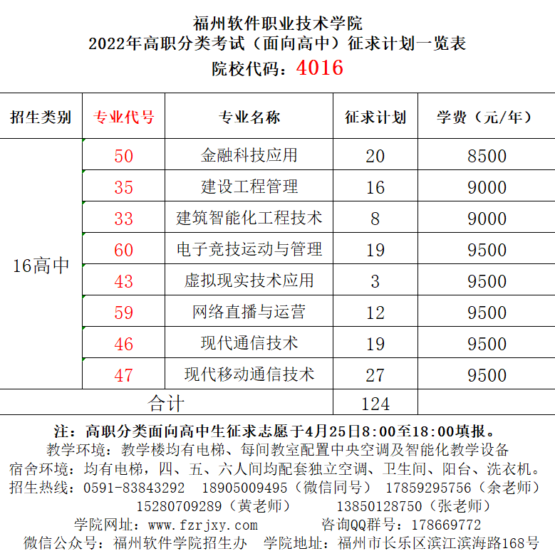 2022年高职分类考试(面向高中)征求计划一览表