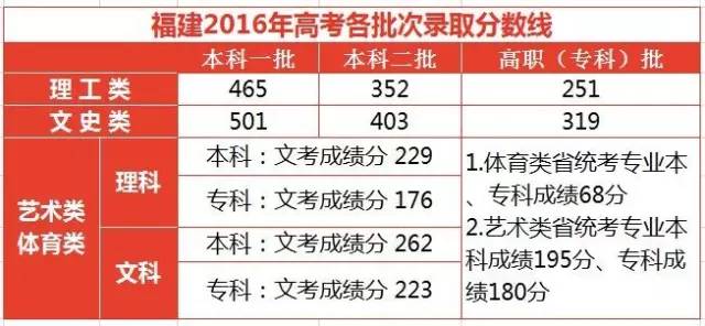 6月23日,福建省高等学校招生委员会召开2016年第二次全体会议,研究部署2016年高校招生录取有关工作,李红副省长主持会议。经会议研究决定,2016年福建省普通高校招生各科类各批次录取控制分数线具体如下: